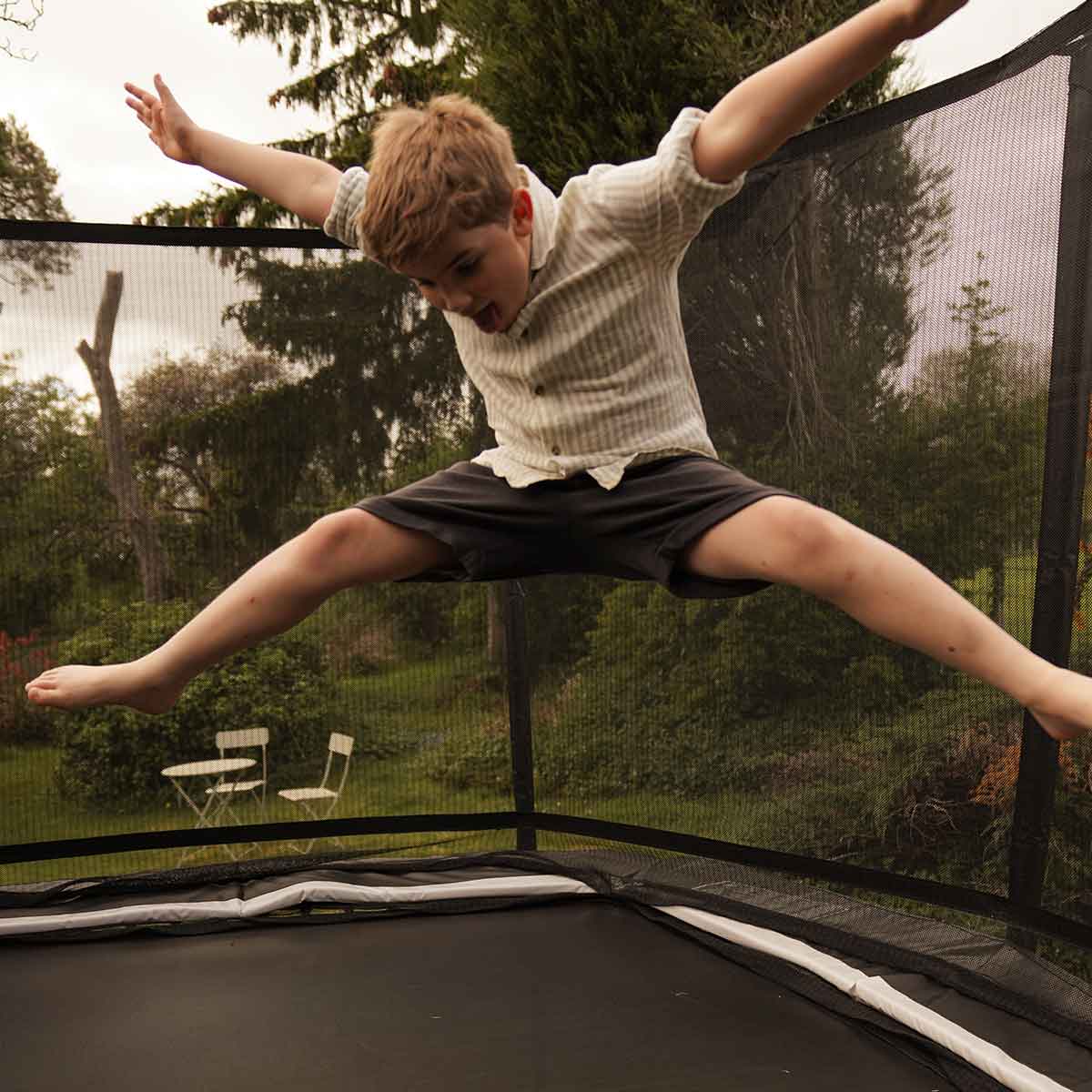 Safety is extremely important when we develop our products. Our trampolines are equipped with innovative safety systems and functions that put the jumper's safety first and protect the jumper from all hard parts of the trampoline, such as the springs and the frame.