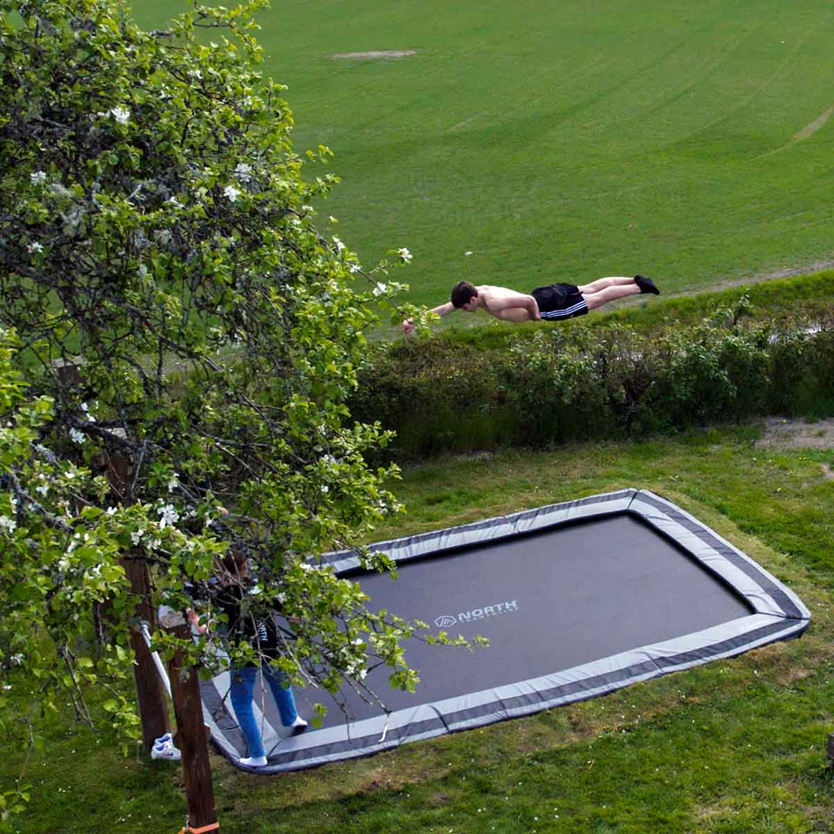 Most rectangular trampolines come in larger sizes. We sell the North Explorer, and North Performer - the ultimate freestyle rectangular trampoline for dedicated jumpers.
