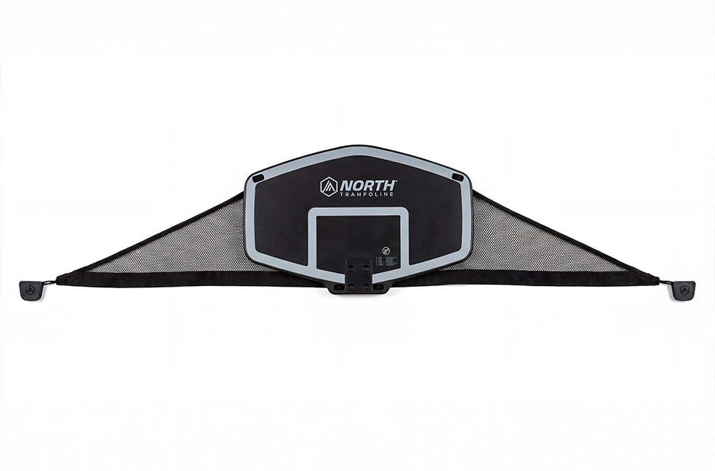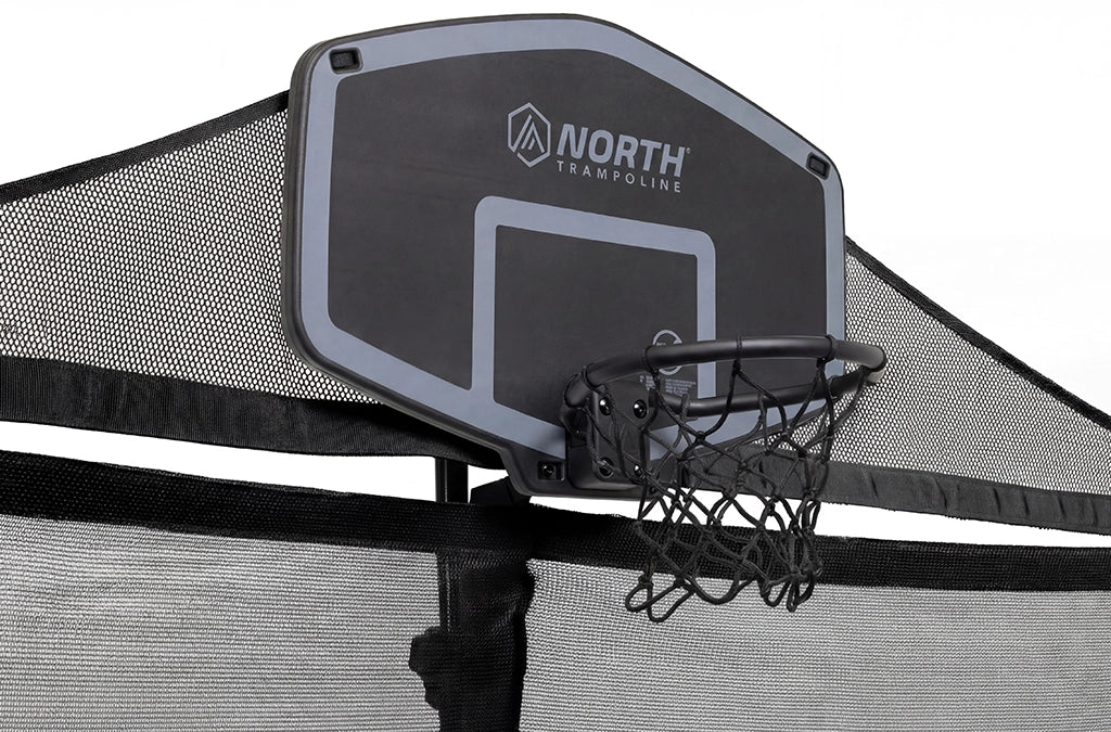 Practice slam dunking on your North Trampoline with a trampoline basketball hoop and soft foam filled ball.